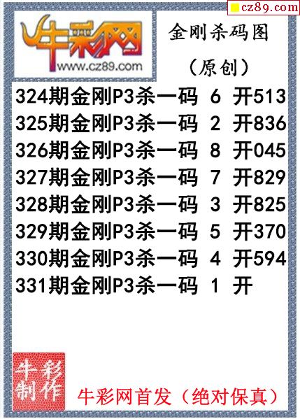 金刚杀码331期体彩P3图迷(原创)